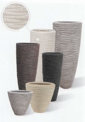 Gefäße aus Polystone, eine Mischung aus gemahlenem Stein und Kunststoff